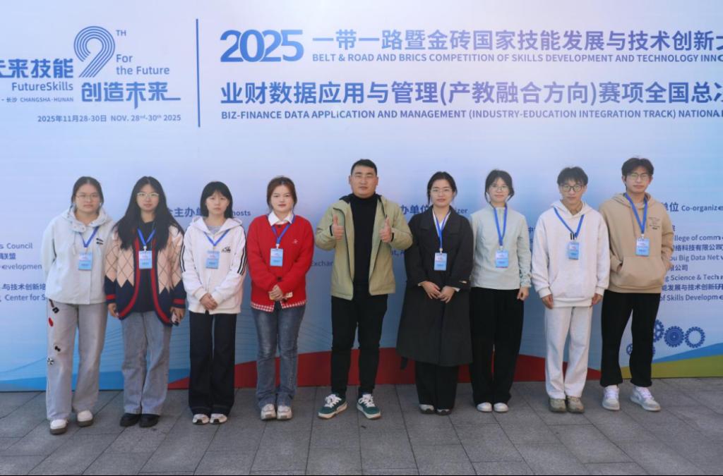 2025年11月30日,备受瞩目的2025年“一带一路”暨金砖国家技能发展与技术创新大赛之业财数据应用与管理(产教融合方向)赛项全国总决赛圆满落幕。来自全国各地的100多支高职竞赛队伍经过紧张激烈的角逐,财会金融学院两支参赛队伍凭借卓越表现,分别荣获二等奖和三等奖,充分展现了学校在职业教育与产教融合方面的显著成果。