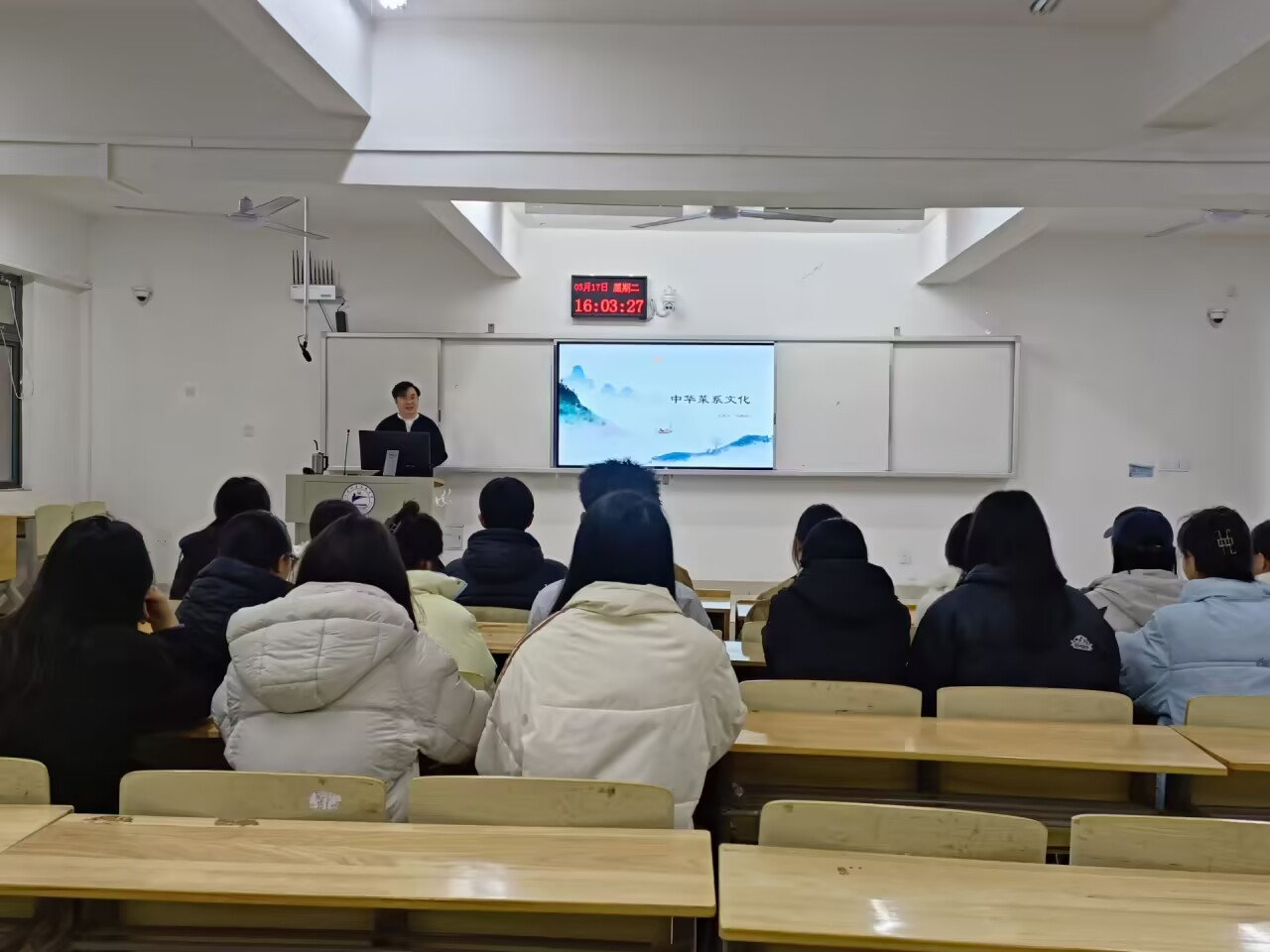 (财会金融学院 黄薇)2026年3月17日,财会金融学院在科创楼A204教室举办了一场以“中华菜系文化”为主题的专题讲座,旅游教研室老师刘鹏鲲主讲。金通空乘2501、2502班级的学生参加了本次讲座。