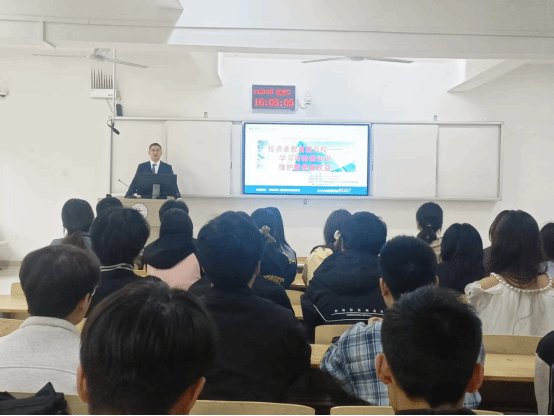 (财会金融学院 黄薇)2026年4月14日,财会金融学院联合东方财富证券九江长虹西大道证券营业部在科创楼A204教室举办了一场以“学习可转债知识”为主题的专题讲座,营业部何鸿源经理担任主讲,金融2502班、信华酒店2502班同学参加了本次讲座。