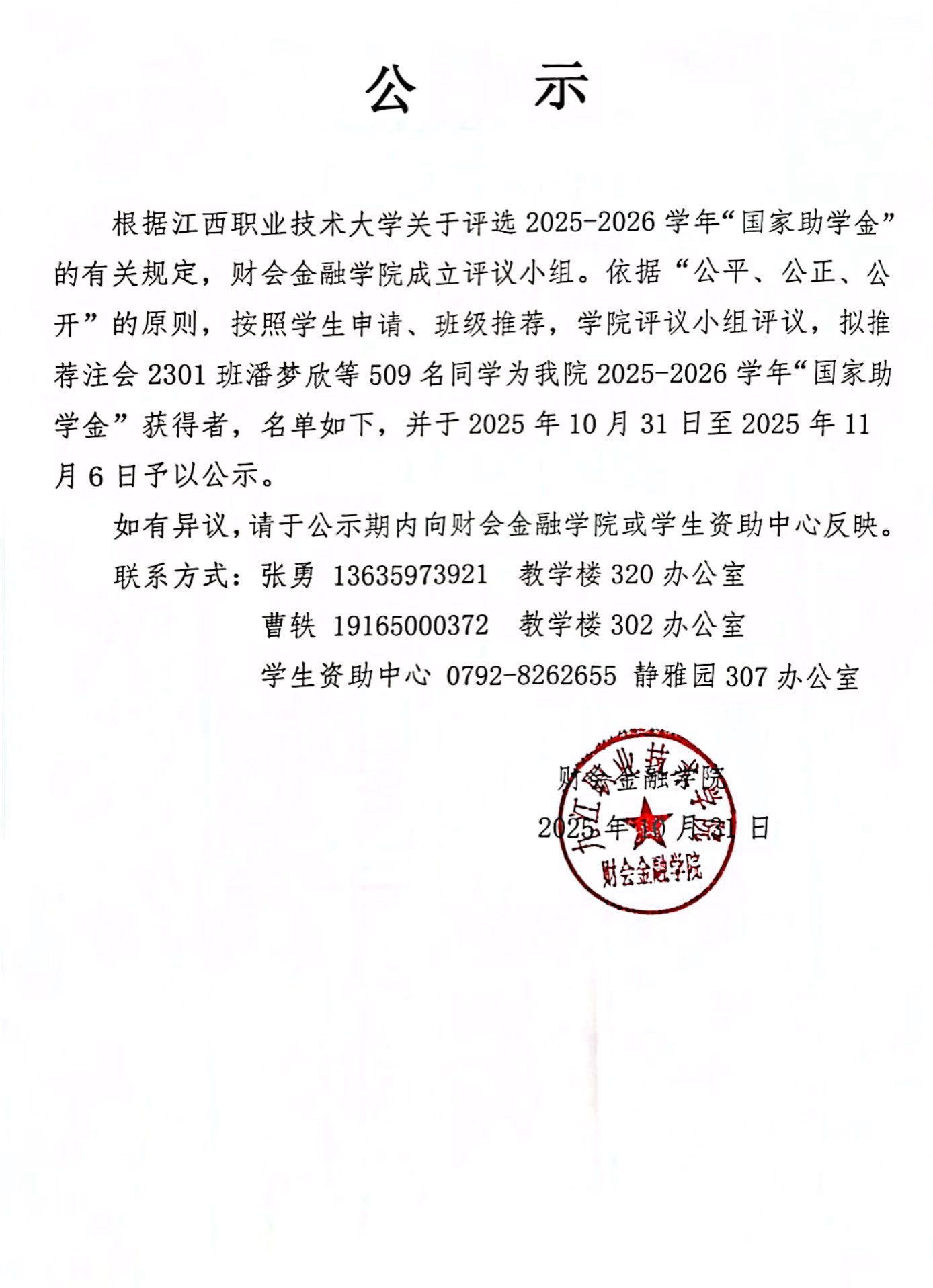 财会金融学院2024-2025学年三好学生、优秀学生干部、素拓之星评选结果公示